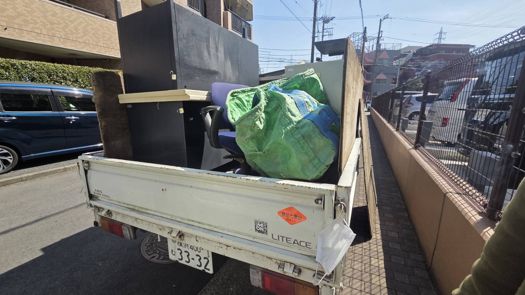 パソコン・デスク・椅子・書庫・パーティション・袖机・フロアマット等トラック1台分の回収を行いました。