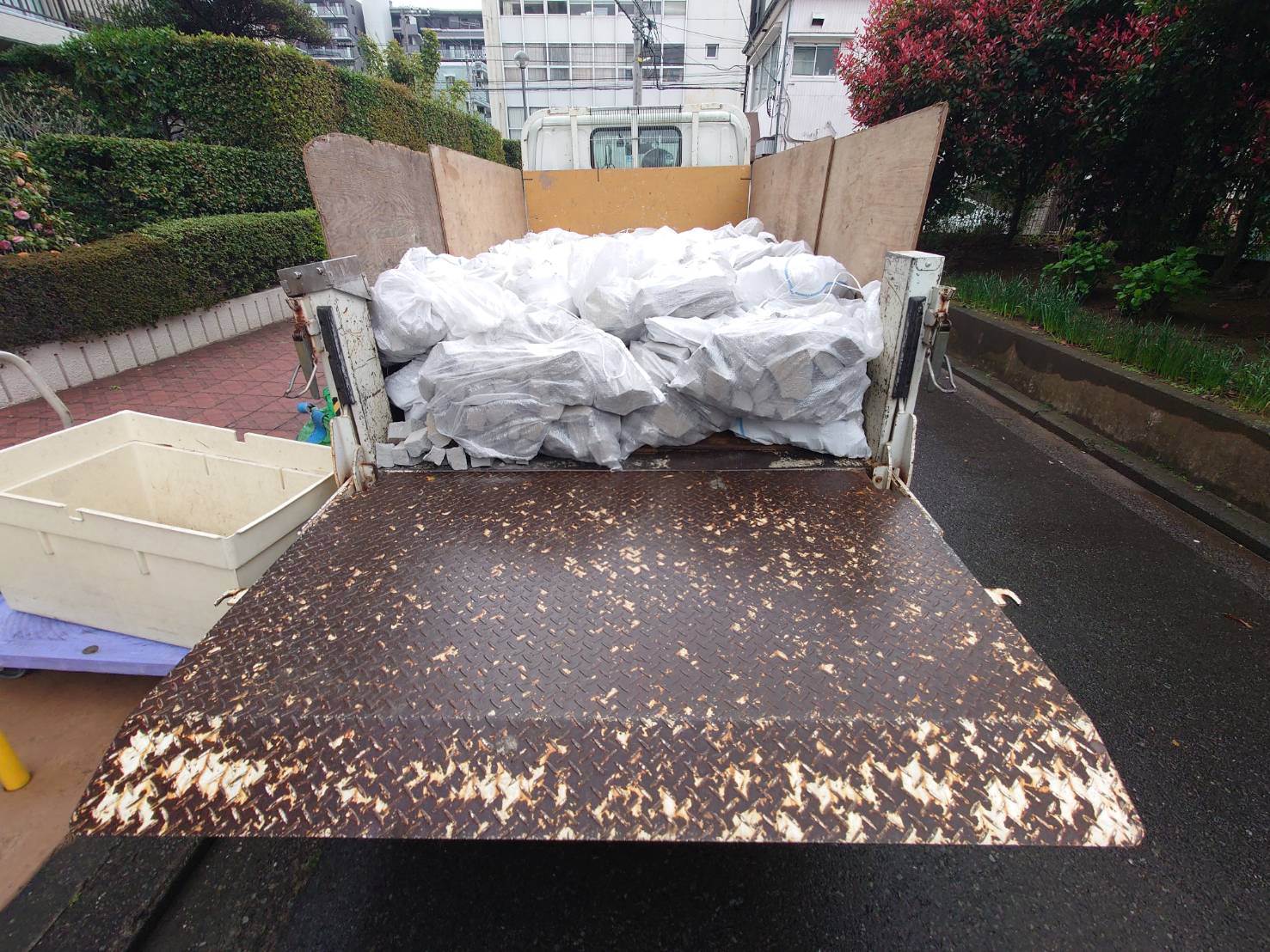不用品や日用品をリサイクルできるものできないものなどを細かく仕分けし梱包してトラックに積み込みました。作業時間は二人で一時間位でした。